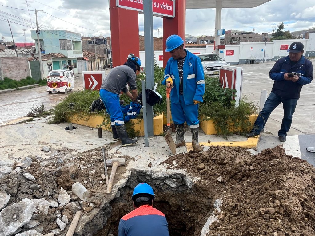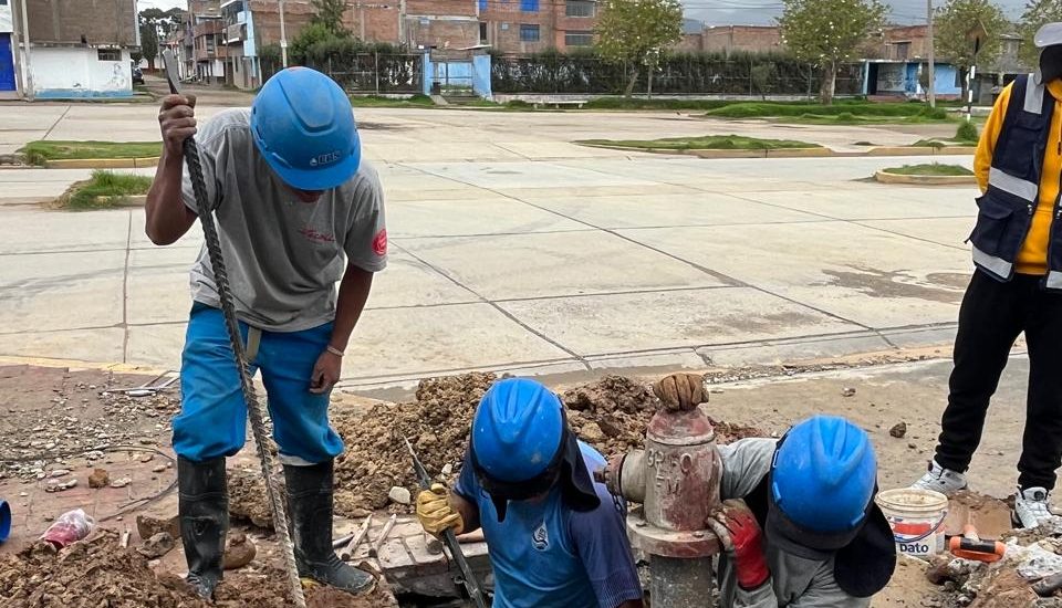 ✔ Reparación de una fuga de agua en una tubería perteneciente a la red matriz ubicada en la intersección del Jr. Tacna y Jr. Grau.